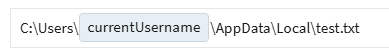 例えば、C:\Documents\Temp\Filename.txt と入力します。